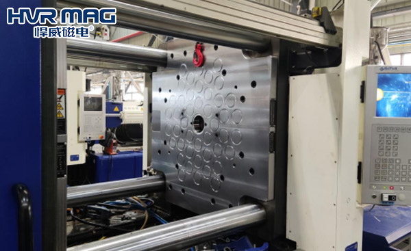 悍威磁电自主研发生产的磁力快速换模系统就是目前广泛流行的自动快速换模系统,它用磁力替代传统的机械夹持力,仅需一名普遍操作人员即可轻松实现模具的快速更换,整个换模时间由之前的4小时缩短至3分钟,从而大大缩短了注塑机的停机时间,提高了注塑机的整体产能和注塑企业的竞争力,特别适合当前注塑企业量少品种多而杂的定制化生产模式。自动快速换模系统除了能快速完成模具的装卸,它还具有断电不失磁、安全节能、模具不变形、适用性强等一系列优点,可广泛适用于50吨—4000吨注塑机。